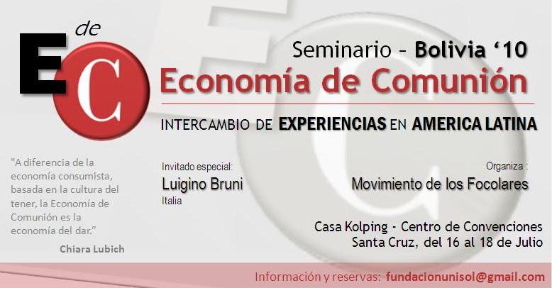 Locandina relativa alla giornata di studio dedicata a Chiara Lubich dall'Università cattolica di Piacenza dal titolo: "L’Economia di Comunione. “Gratuità, povertà, felicità: da comportamento sociale a relazione economica” - Piacenza, 25 maggio 2010