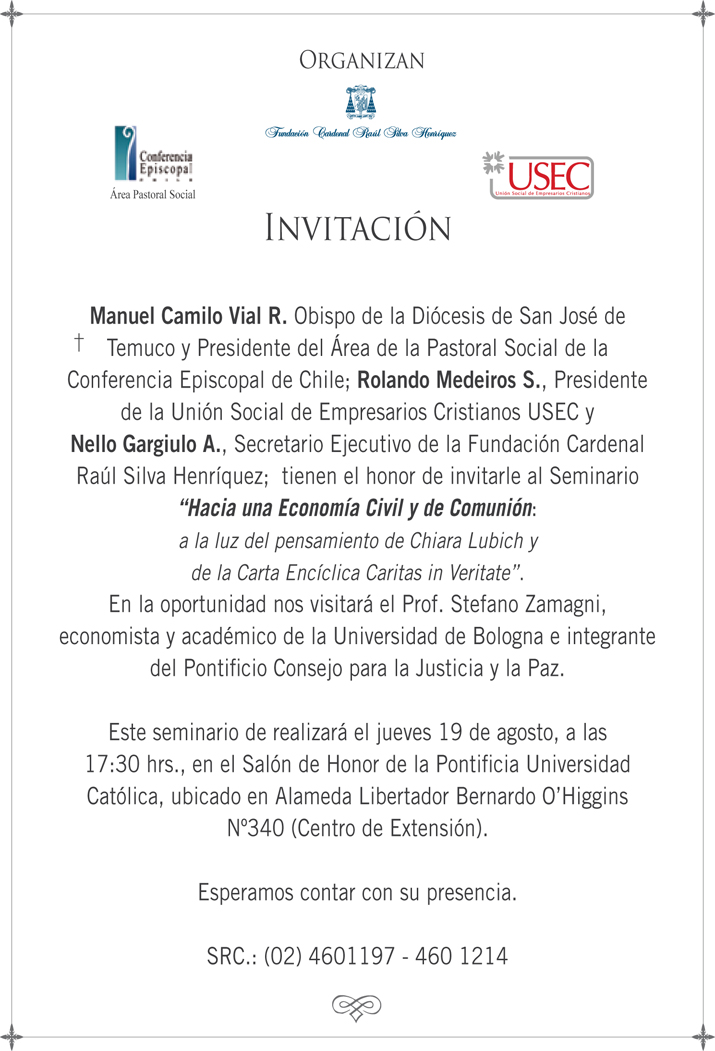 Invito relativo alla giornata di studio dedicata a Chiara Lubich dall'Università cattolica di Piacenza dal titolo: "L’Economia di Comunione. “Gratuità, povertà, felicità: da comportamento sociale a relazione economica” - Piacenza, 25 maggio 2010