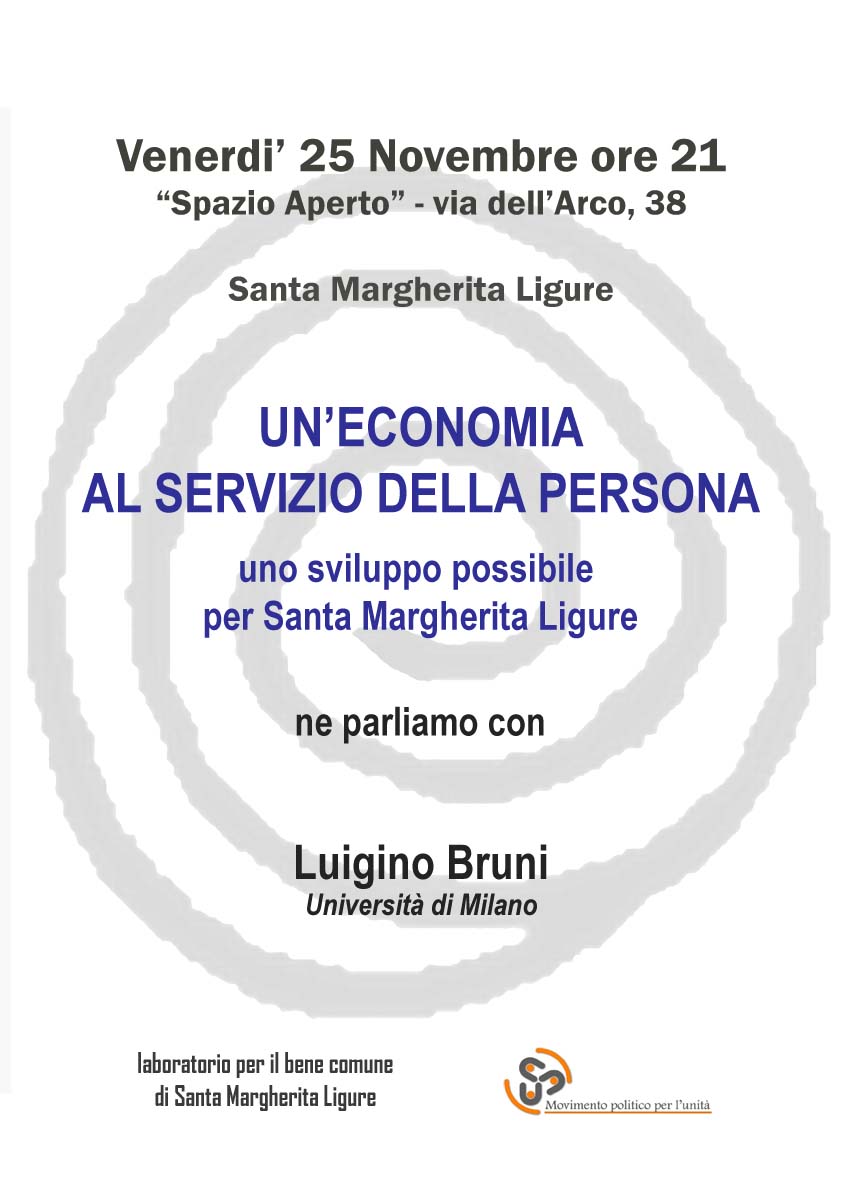 Invito alla Conferenza di Luigino Bruni: Un'economia a servizio della persona, uno sviluppo possibile per Santa Margherita Ligure" - Santa Margherita Ligure (GE), 25/11/2011