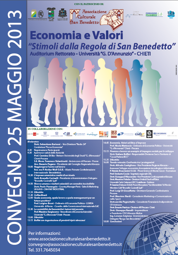 Invito al Convegno: "Economia e Valori:stimoli dalla Regola di San Benedetto" - Chieti, 25 maggio 2013
