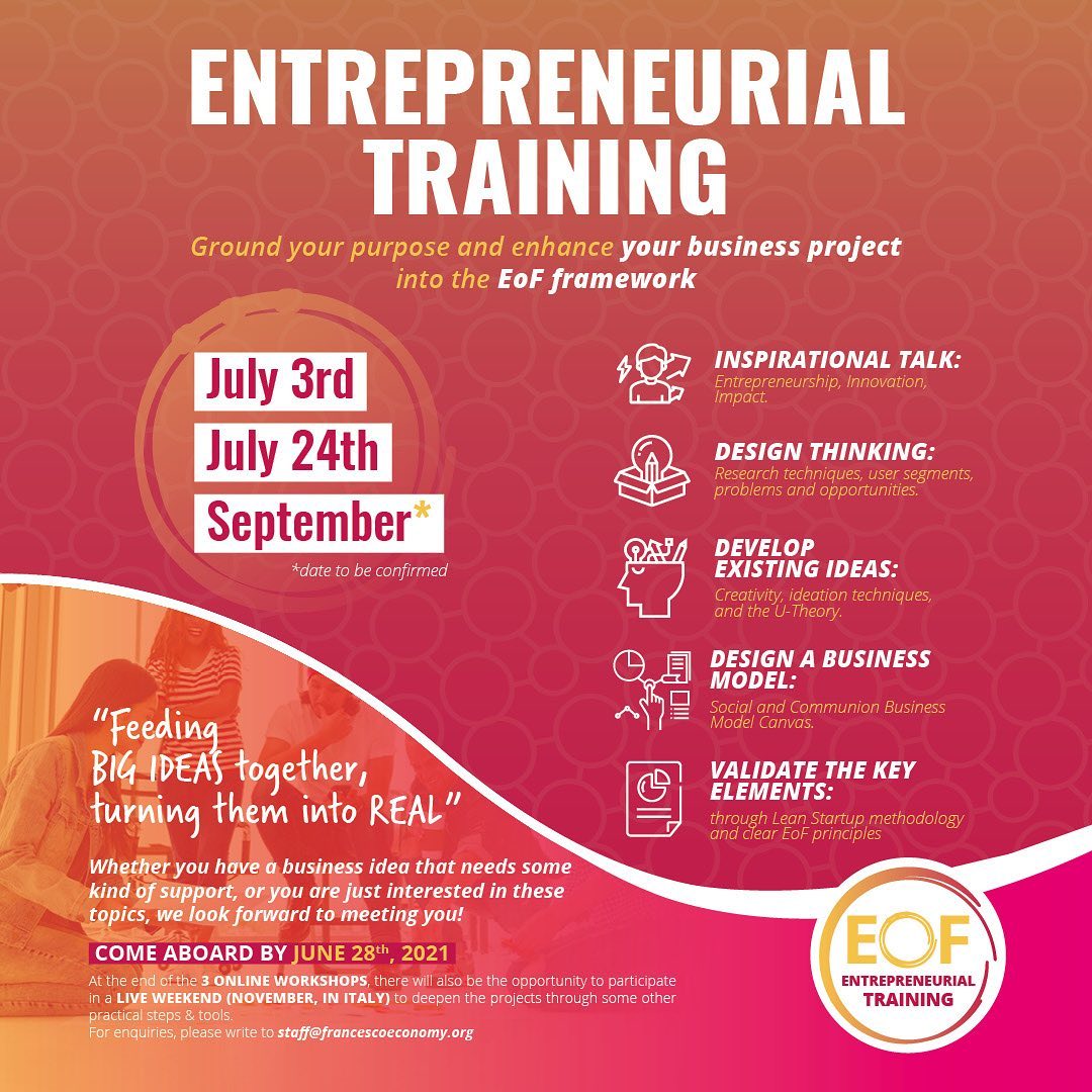 In questa categoria sono raccolti tutti i materiali divulgativi relativi all'evento "30 anni di Economia di Comunione" del 29 maggio 2021 in diretta streaming da Loppiano (FI).