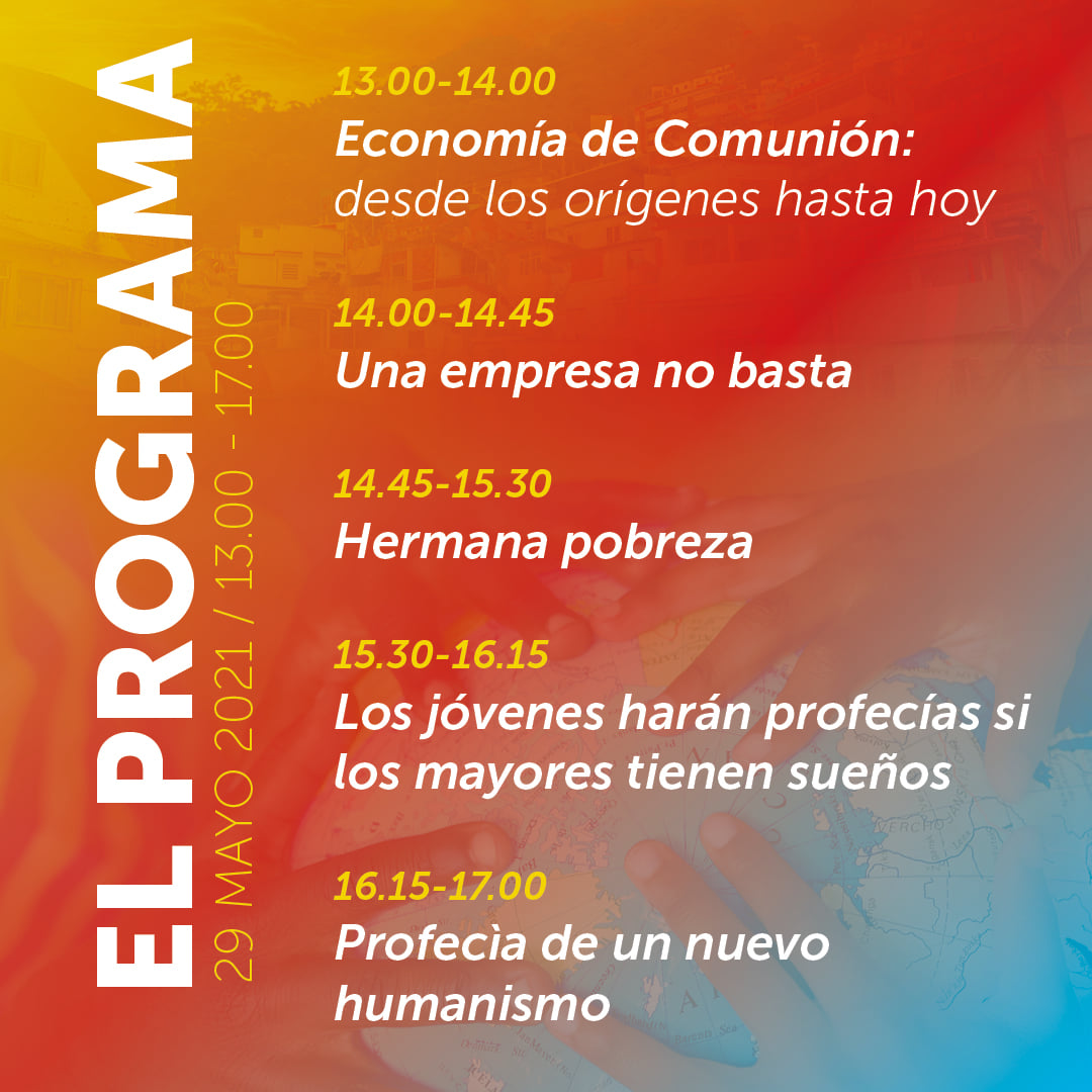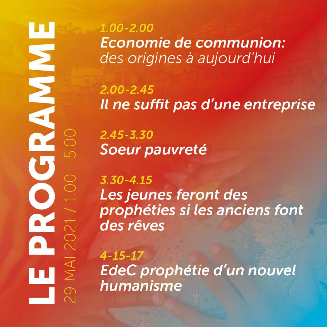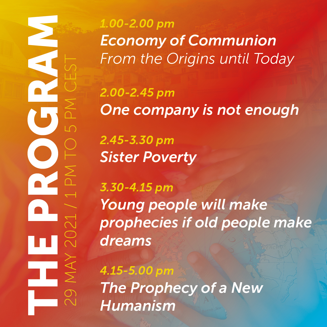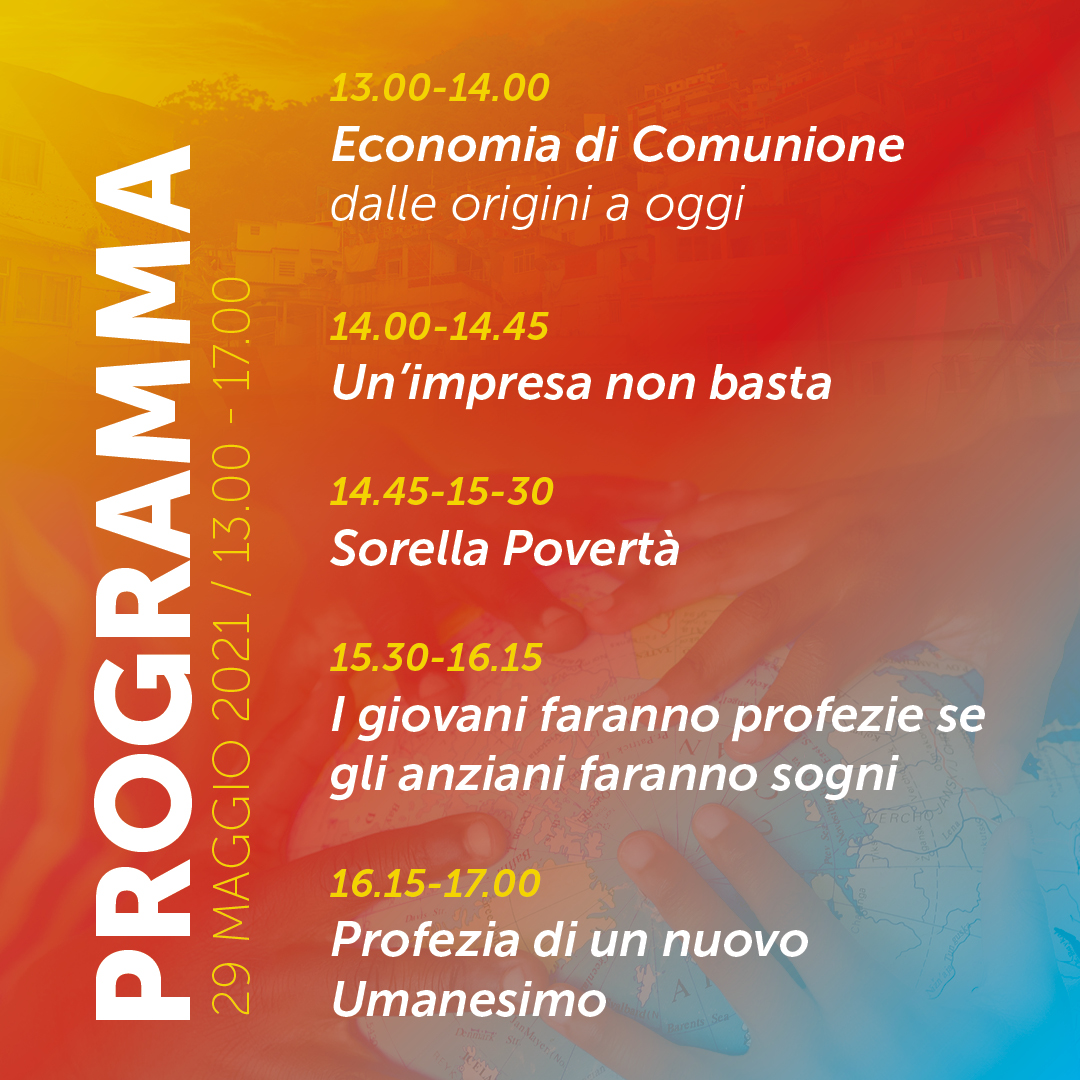 In questa categoria sono raccolti tutti i materiali divulgativi relativi all'evento "30 anni di Economia di Comunione" del 29 maggio 2021 in diretta streaming da Loppiano (FI).
