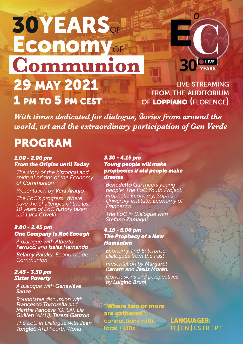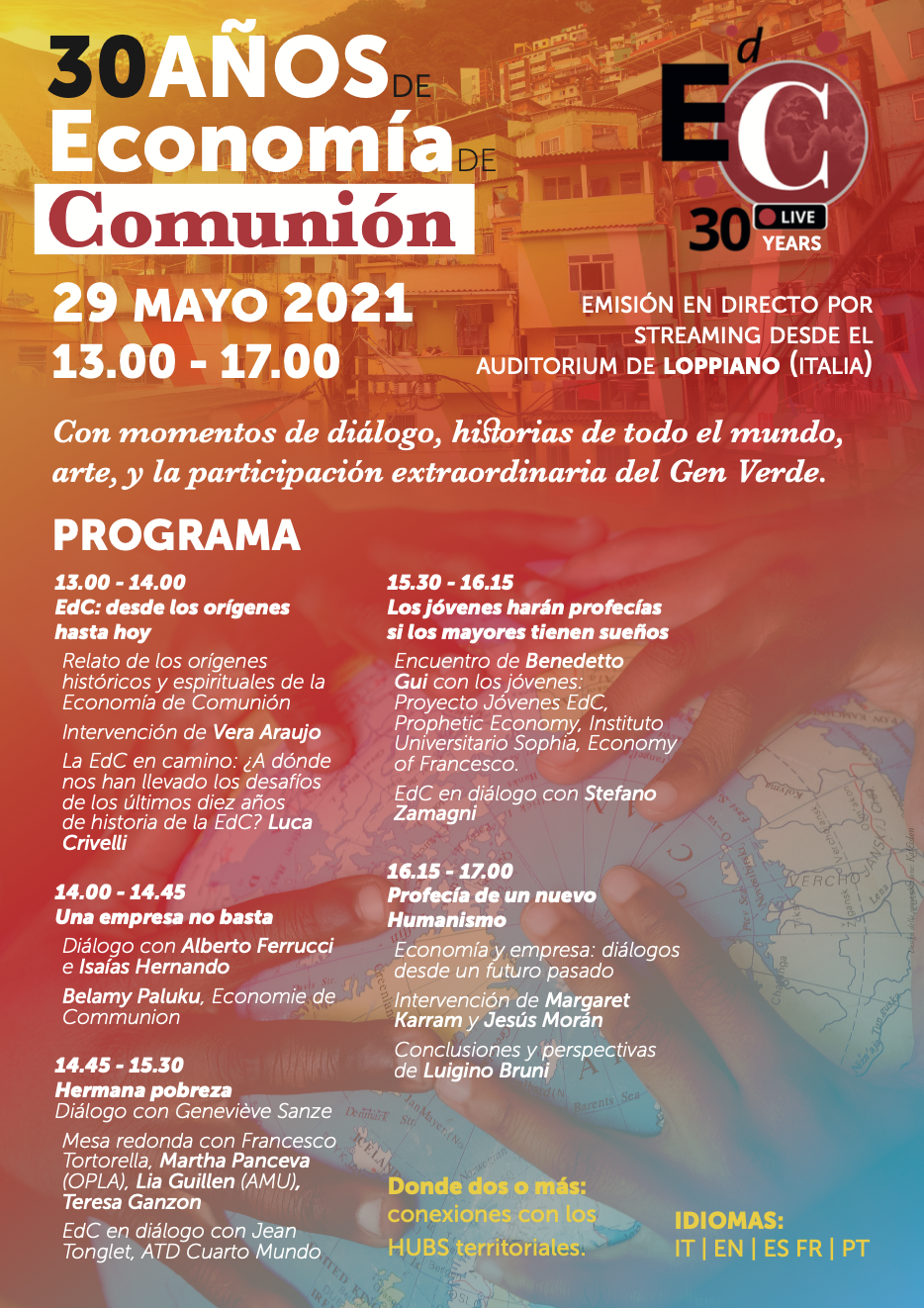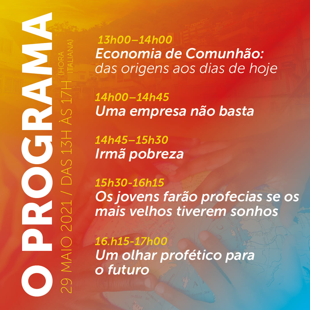 In questa categoria sono raccolti tutti i materiali divulgativi relativi all'evento "30 anni di Economia di Comunione" del 29 maggio 2021 in diretta streaming da Loppiano (FI).