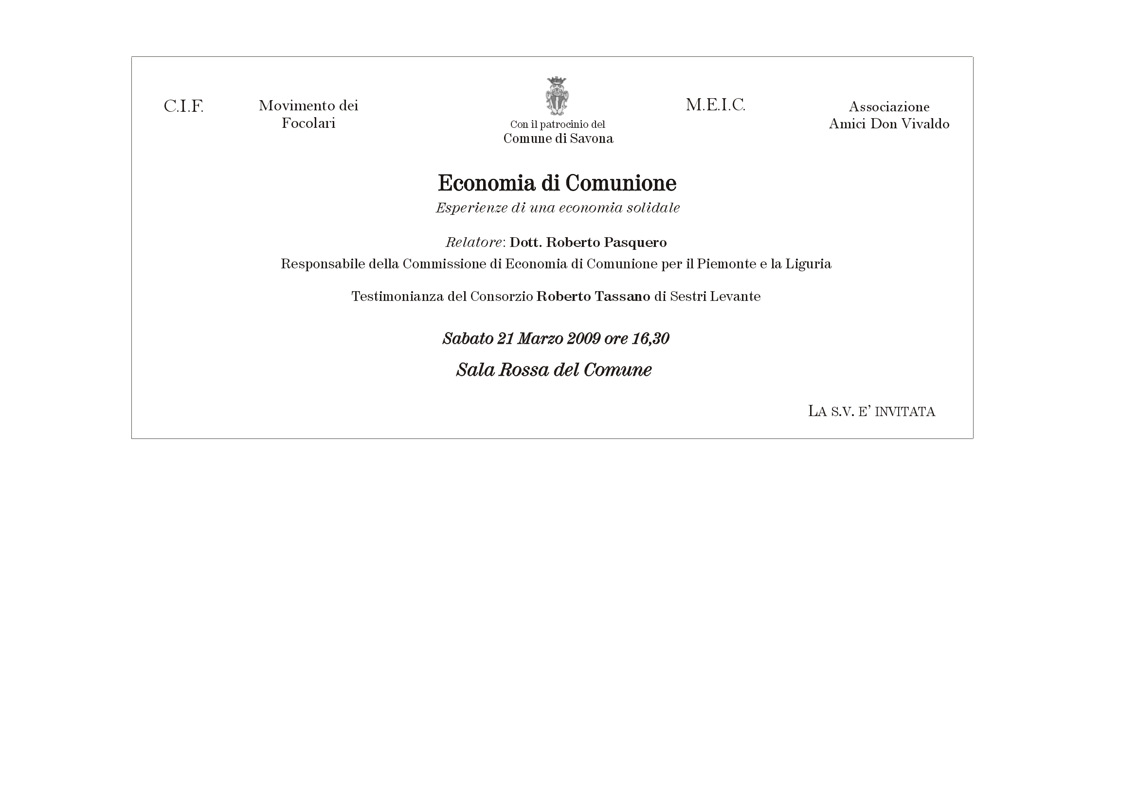 Invito alla presentazione Edc a Savona del 21 marzo 2009