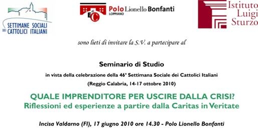 Invito al Convegno "L’idea di comunità nell’agire d’impresa" - Polo Lionello - Loppiano, 26 aprile 2010
