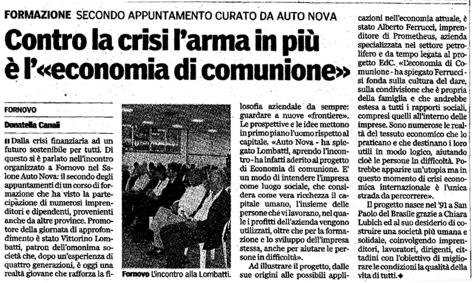 Articolo su Economia di Comunione pubblicato sul Sole 24 ore del 3 aprile 2010 - Prima pagina