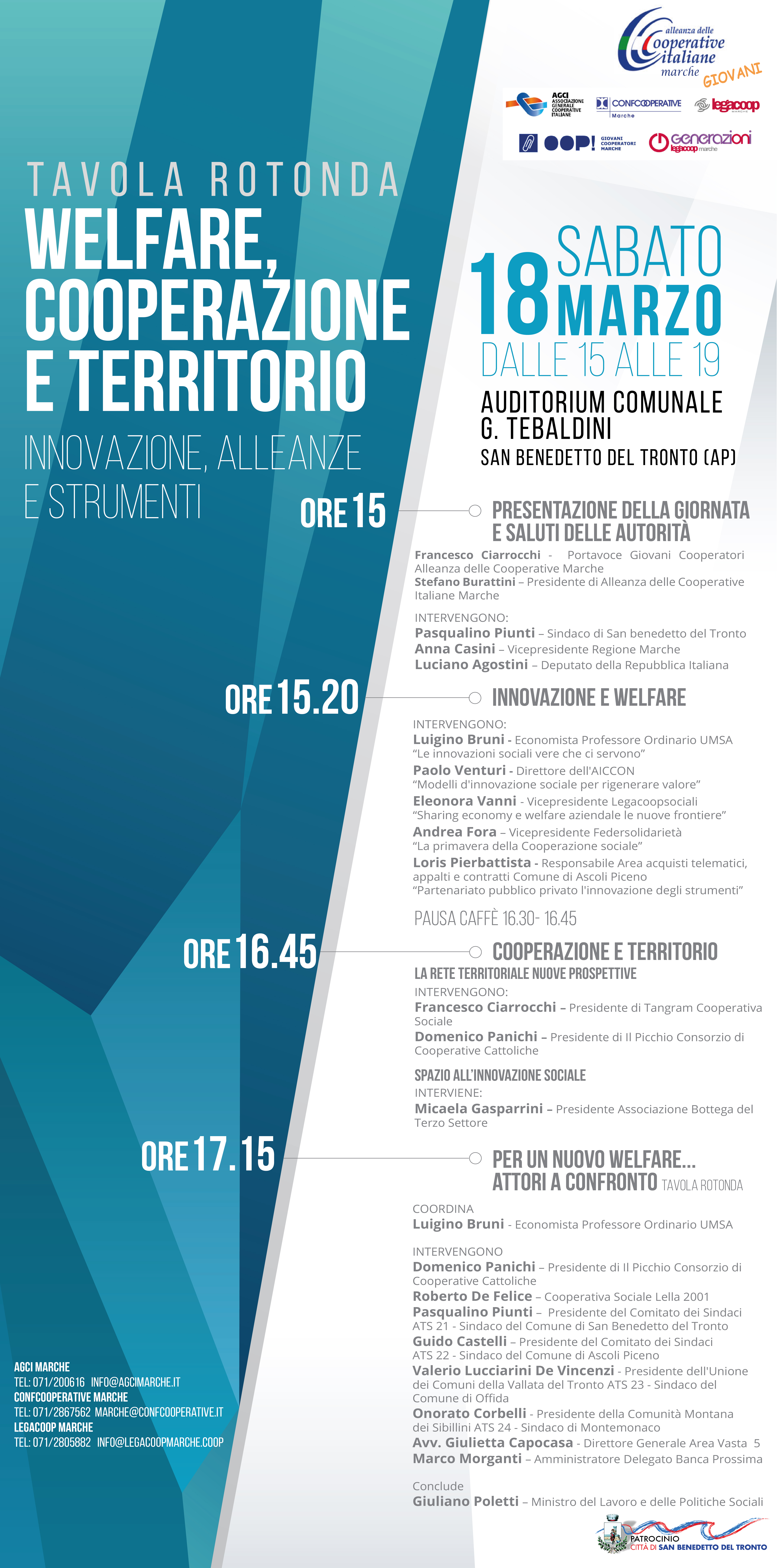 Programma della tavola rotonda "Welfare, cooperazione e territorio", interviene Luigino Bruni. San Benedetto del Tronto, 18/03/2017