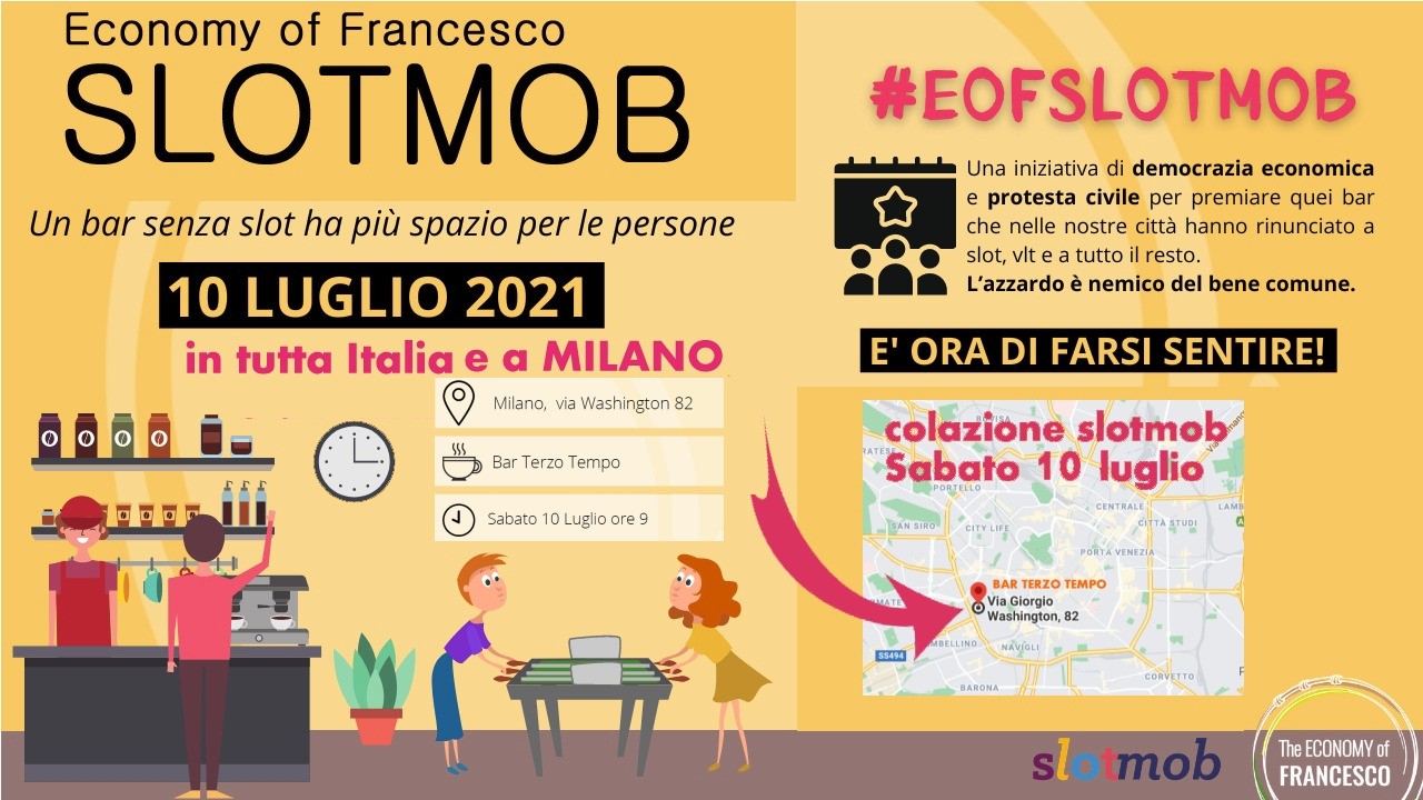 Sei di Milano? Ti aspettiamo al Bar Terzo Tempo, Via Washington 82, il 10/07/2021 alle 9.00 per fare insieme una colazione Slotmob.Da nord a sud, questo sabato 10 luglio, tanti bar senza Slot saranno il luogo di incontro del #EoFSlotmob. Perché un bar senza slot ha più spazio per le persone. Accompagnaci.Come raggiungerci: https://bit.ly/3iHbngk