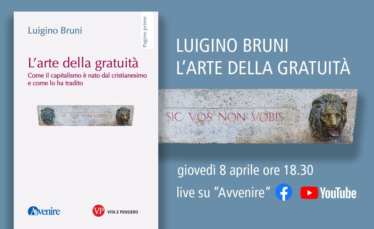 Presentazione del nuovo libro di Luigino Bruni per Vita e Pensiero "L'arte della gratuità" - 8 aprile 2021, ore 18:30 sulla Pagina Facebook ed il Canale YouTube di Avvenire