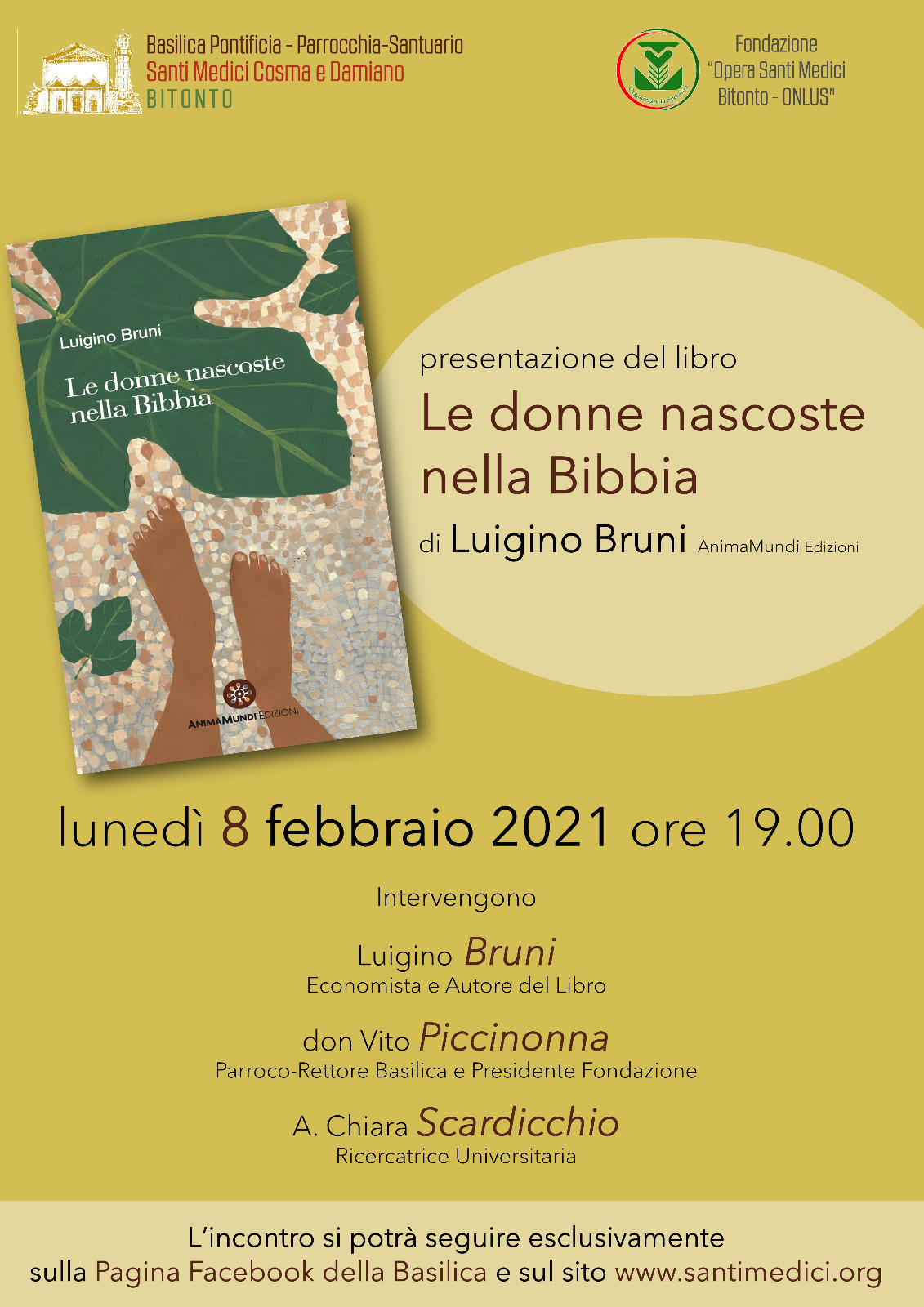 Lunedì 8 febbraio 2021 alle or e19:00, webinar di presentazione del libro "Le donne nascoste nella Bibbia", Anima Mundi Edizioni, con l'autore Luigino Bruni
