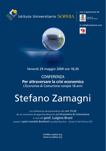 Invito alla Conferenza di Stefano Zamagni  - Per attraversare la crisi economica -