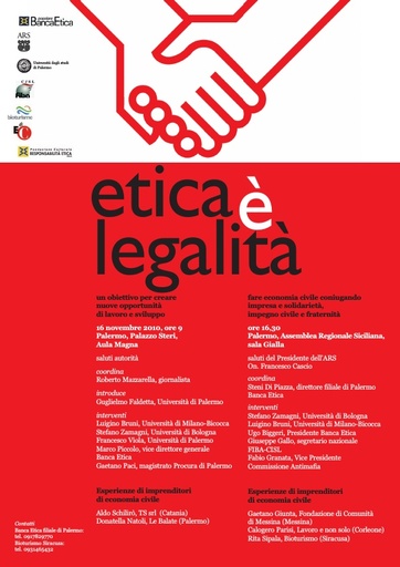 Invito al Convegno organizzato da Banca Etica "Etica è legalità" - Palermo, 16 novembre 2010