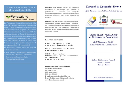 Brochure completa del corso di Alta formazione a Economia di Comunione della diocesi di Lamezia Terme - dicembre 2010 giugno 2011