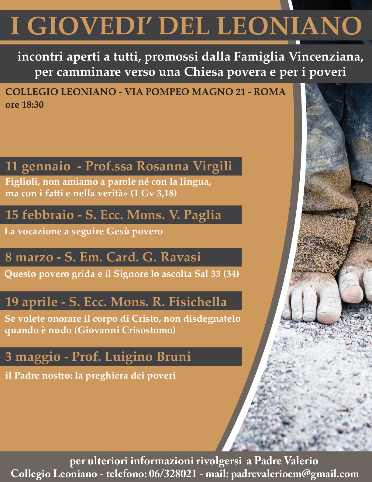 Programma completo della rassegna "I Giovedì del Leoniano" nel cui ambito Luigino Bruni terrà la conferenza dal titolo:"Il Padre nostro, la preghiera dei poveri" - Roma, 3 maggio 2018