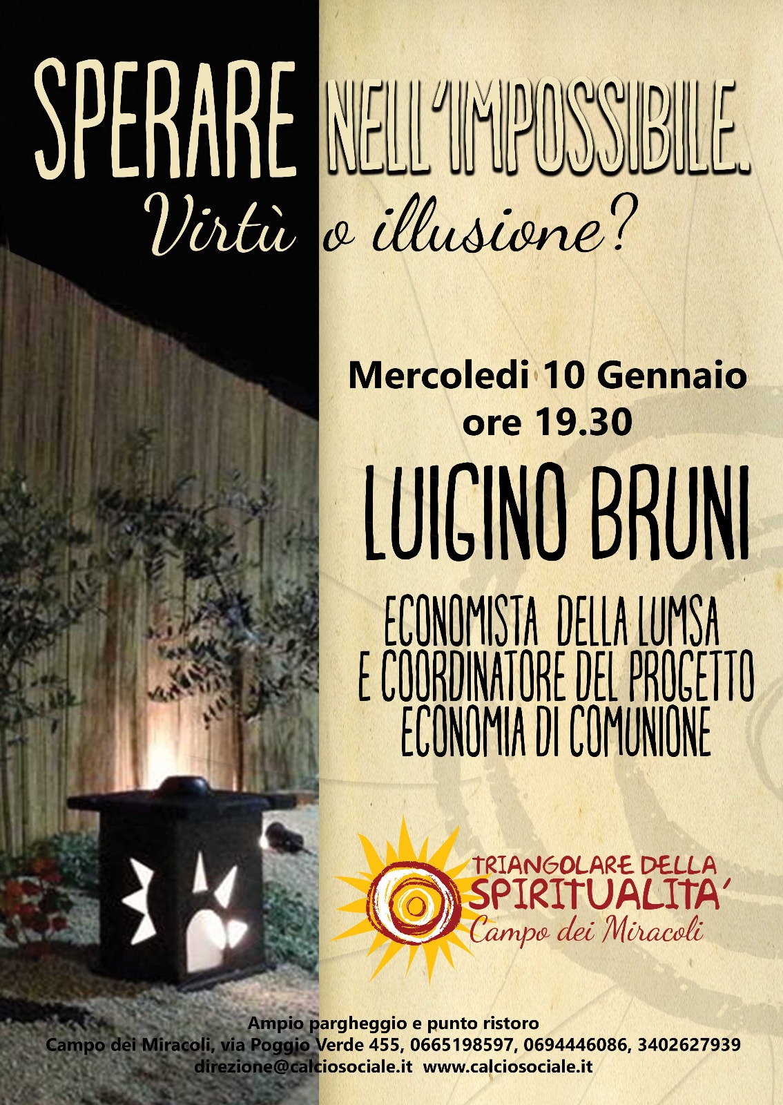 Nell'ambito della "Triangolare della spiritualità, Campo dei Miracoli", invito alla serata dal titolo: "Sperare nell'impossibile. Virtù o illusione", interviene Luigino Bruni - Roma, 10 gennaio 2018